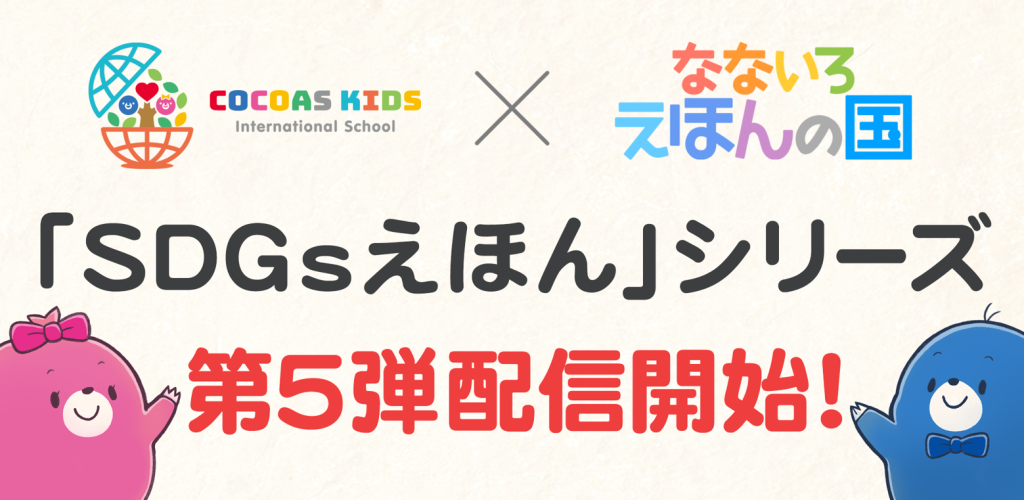 株式会社アイフリークスマイルズと株式会社REBIUSの運営するインターナショナルスクール「ココアスキッズ」(以下 ココアスキッズ)と共同制作した、SDGsをテーマとした絵本シリーズ第5弾の配信が開始されました。