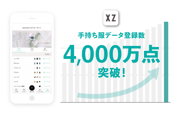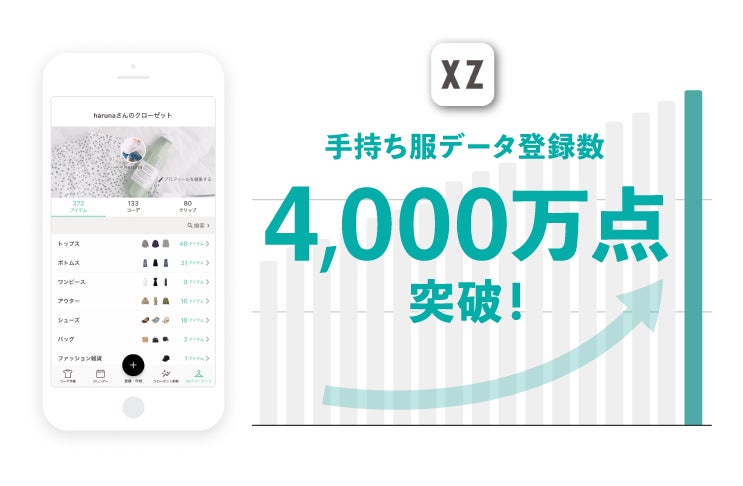 株式会社STANDING OVATIONが運営するオンライン・クローゼットアプリ「XZ(クローゼット)」への、ユーザーの「持っている服」の登録数が累計4,000万点を突破したことをお知らせします。