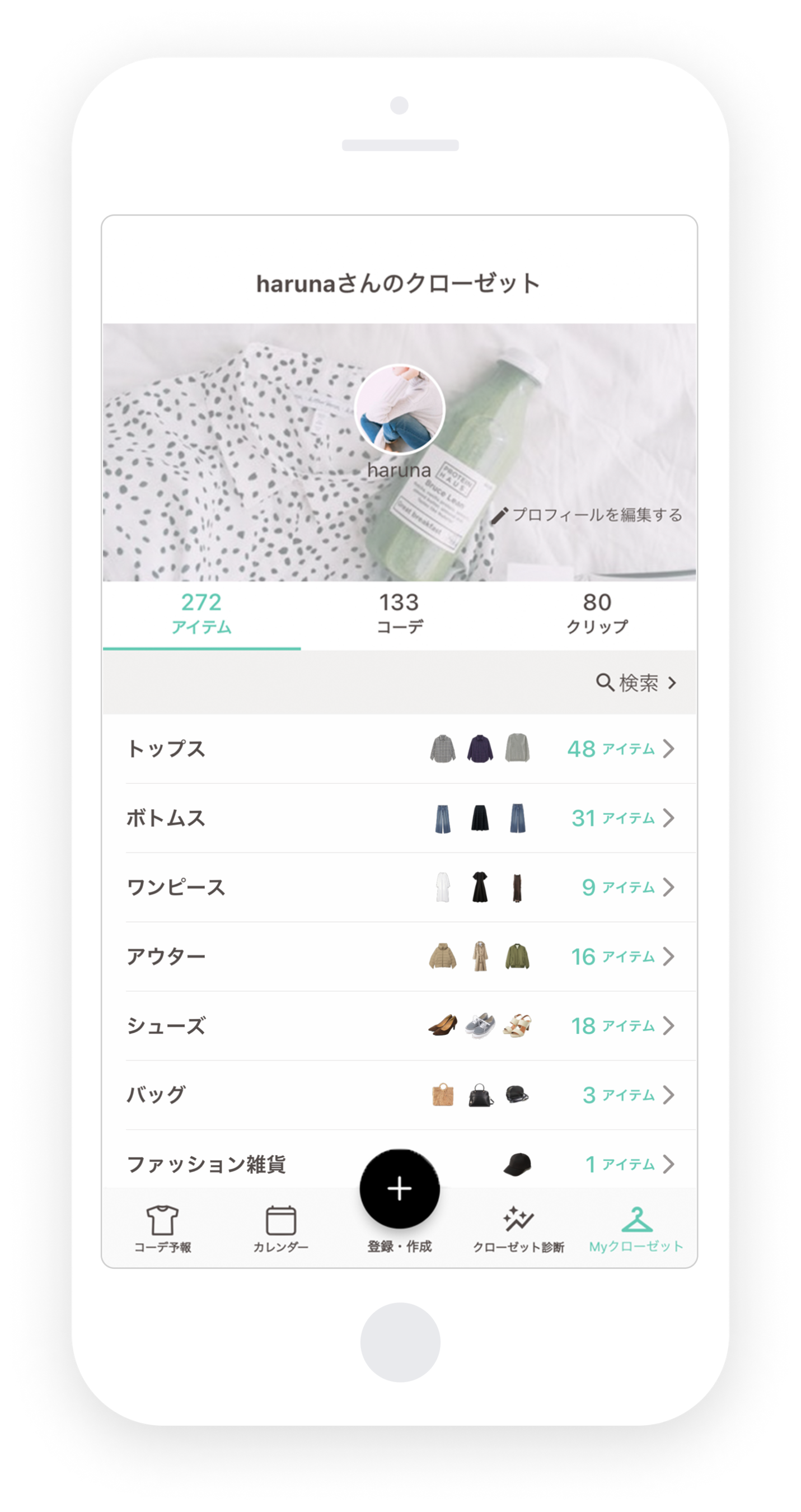 気に入ったコーディネートはそのままカレンダーに記録したり、アイテムを組み替えて保存することができます。今日着た服を記録することで、いつ・どんなコーディネートを着用したか確認できることはもちろん、アイテムの着用回数をカウントすることができます。