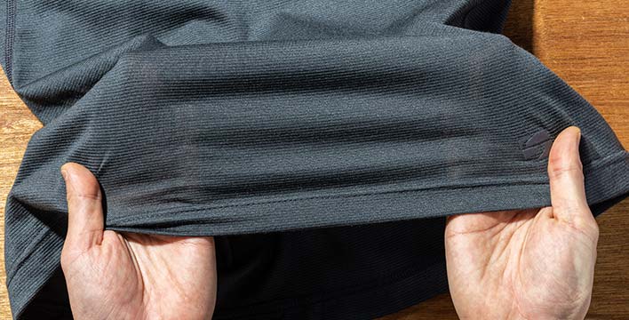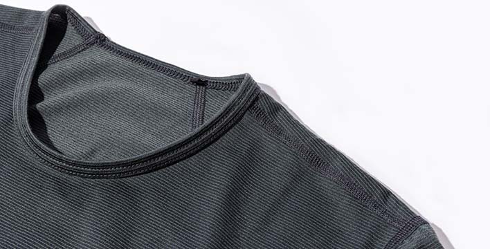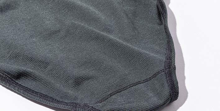 柔らかく肌あたりの良いトリアセテートと、速乾性に優れたポリエステルをハイブリッドすることで、高い吸汗性能を備えながらも快適に着られるインナーウエアに仕上がっています。また、肌に負担の少ない縫い目の仕様もこだわりのポイントです。